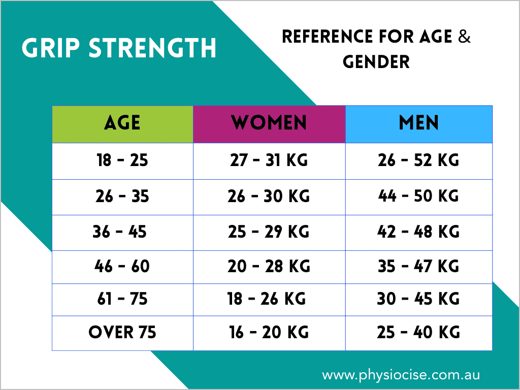 In class this week, we’re looking at how grip strength is measured and what it means for different age groups. You can also explore the grip strength table to see the recommended range for your age.