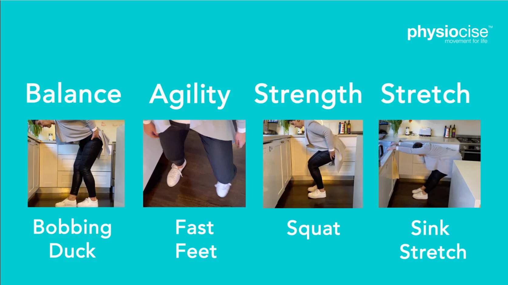Physiocise founder Anna-Louise Bouvier takes you into her kitchen for you weekly Balance, Agility, Strength and Stretching. 2 minutes a day is all it takes t...